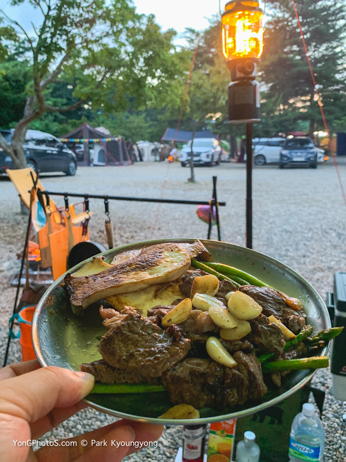 삼척엘림캠핑장은 밤10시가 매너타임이었다. 그렇다보니 저녁을 먹고나서부 터 마음이 급해졌다. 설거지을 해야하고 씻어야하고 간단하게 맥주도 한잔 더 마셔야하니깐… 뭔가 미션을 클리어 한다는 기분이 들 정도였다. 밤10시 부터는 렌턴 조차 허락을 안해주시니 조금 야속하다는 생각마저 들었다… 맥주 한캔 따놓고, 풀벌레 소리 들으며 렌턴 불빛을 멍하게 바라보는 소위 ‘렌턴멍’이 꿀맛인데… 이곳에선 그 시간을 즐길수가 없었다..