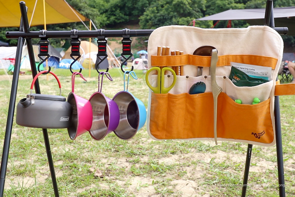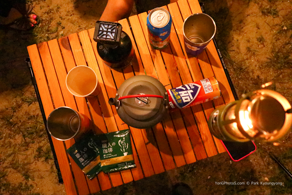 의자는 당연히 헬리녹스 체어원, 테이블도 가볍게 헬리녹스 테이블원과 미니멀웍스 모카롤테이블 두 개만 챙겼다. 일회용품 없이 수저, 젓가락, 시에라컵으로 식기류를 해결했고, 위글위글 구이바다와 코베아 맥시멈버너로 투버너를 완성했다.