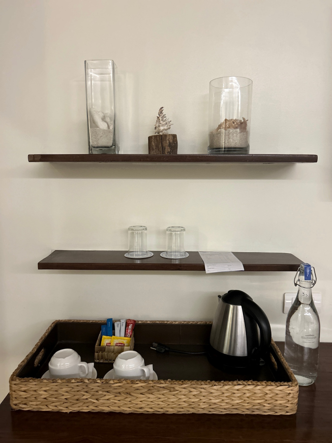 이런 첫인상의 여운이 남아 있던 상태에서 배정받은 방이 해변 근처도, 수영장 근처도 아닌 어정쩡한 위치라 또다시 실망했다. 하지만 깔끔하게 리노베이션된 객실과 널찍한 침대 두 개가 있어 불편함은 없을 것 같았다.