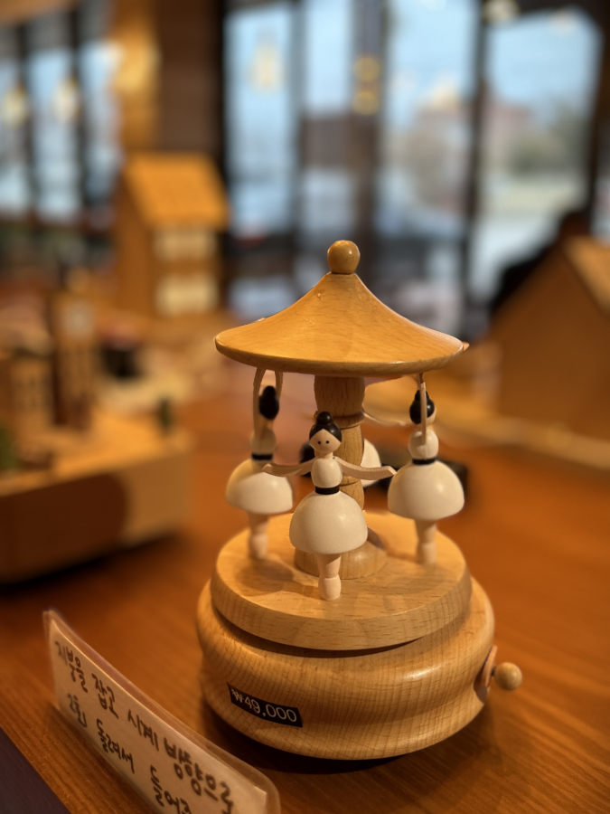 카운터에서 커피와 케이크를 주문한 후, 1층 안쪽에 있는 오르골 전시 공간으로 향했다. 이곳에서는 직접 오르골을 만들어볼 수도 있었고, 완성된 오르골을 구매할 수도 있었다. 다양한 오르골에서 울려 퍼지는 익숙한 멜로디들이 향수를 불러일으켰다.