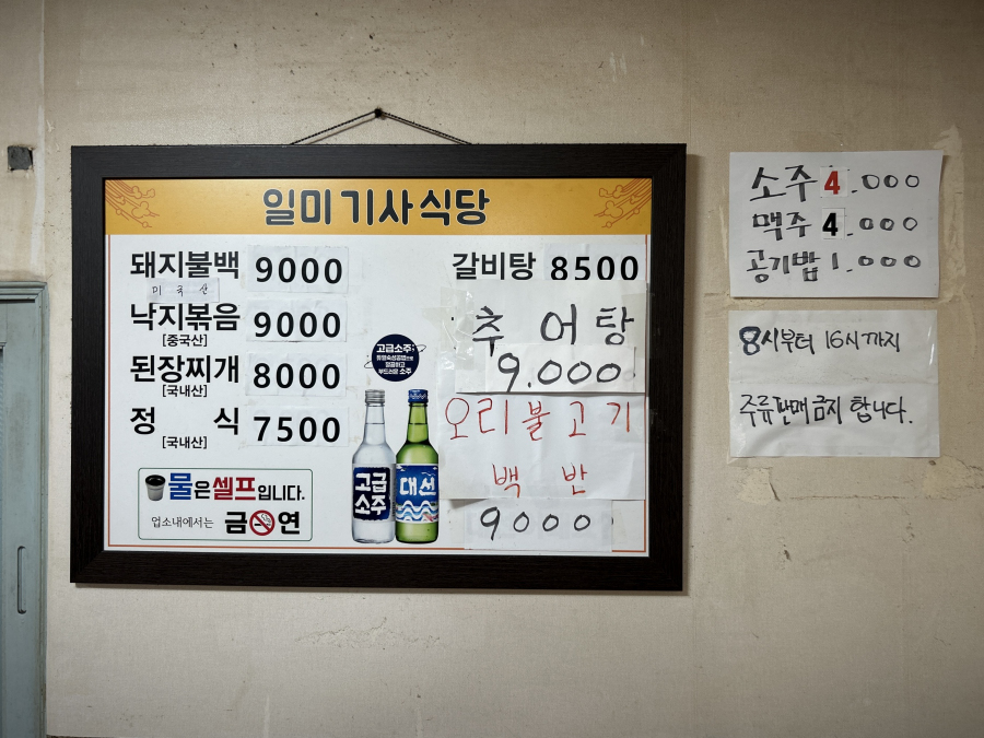 반면, 일미기사식당은 오전 8시부터 오후 9시까지 영업하며, 일요일만 휴무라 접근성이 훨씬 좋다.