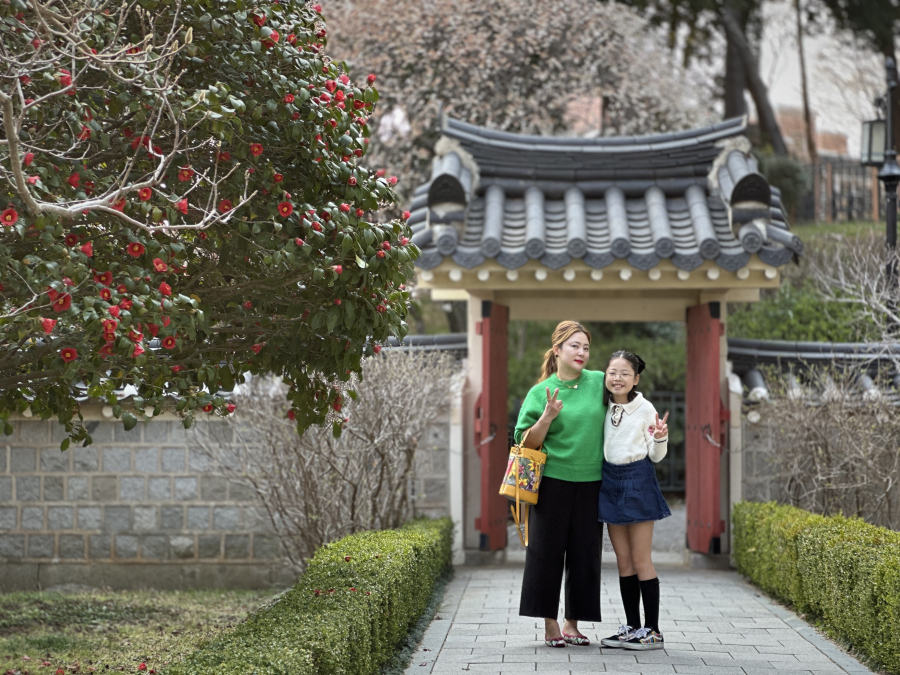 매화, 동백, 목련이 살랑살랑 바람에 흔들리며 봄이 왔음을 알린다.